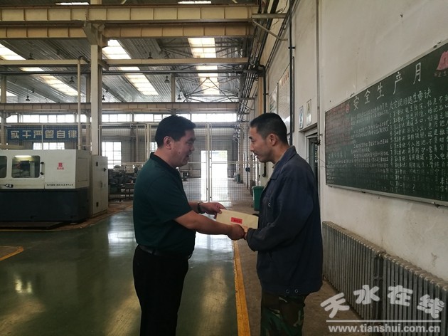 (市企業(yè)工委副書記曹秀明走訪慰問風動公司黨員黃龍龍同志) 企業(yè)邀請專家講黨課、基層黨支部在生產(chǎn)一線慶祝黨的生日。